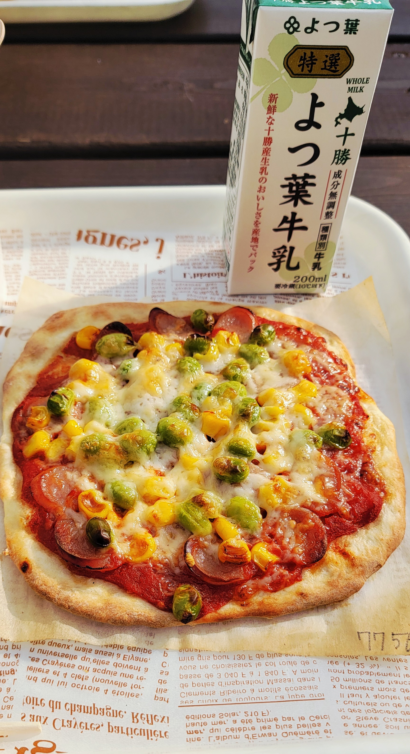 焼きたてのピザとクラムチャウダー、サラダ、チョコパン、開発に6年かかったオドゥヴレ。