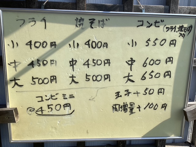 あそこが入口かな?脇にメニューがある、まるで農家の物置みたいだな。