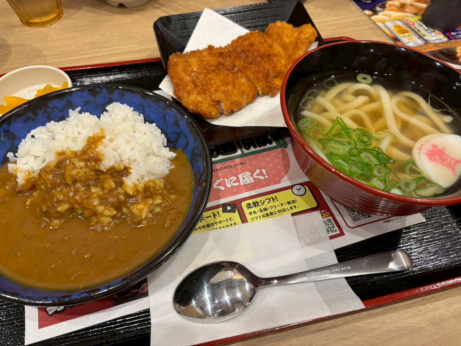 ミニうどん(¥310)ミニカレーライス(¥409)カツ(¥350) を注文!