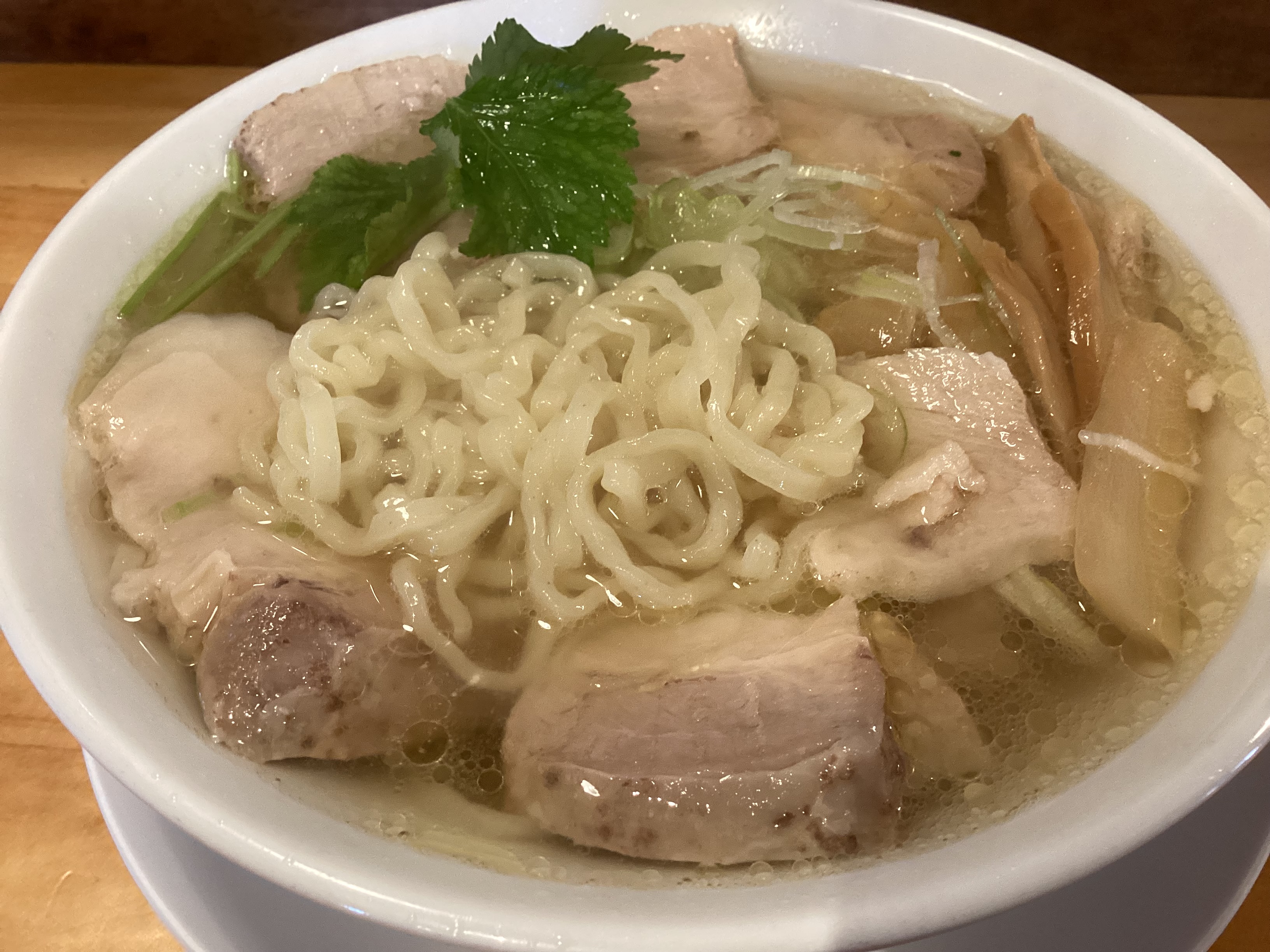 店員さんが喜多方ラーメンの塩はうちだけとの事で、2人で会津山塩チャーシュー(朝ラー限定無料ライス付) ¥1,150注文