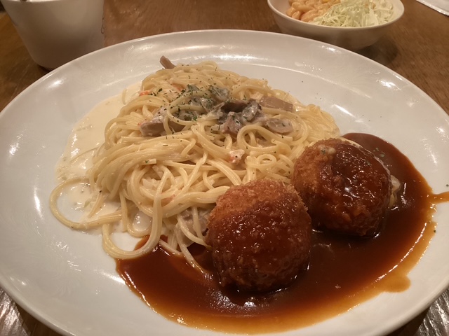 決まり!蟹クリームパスタと蟹クリームコロッケのWクーリムパスタ Mサイズ¥1,850注文。